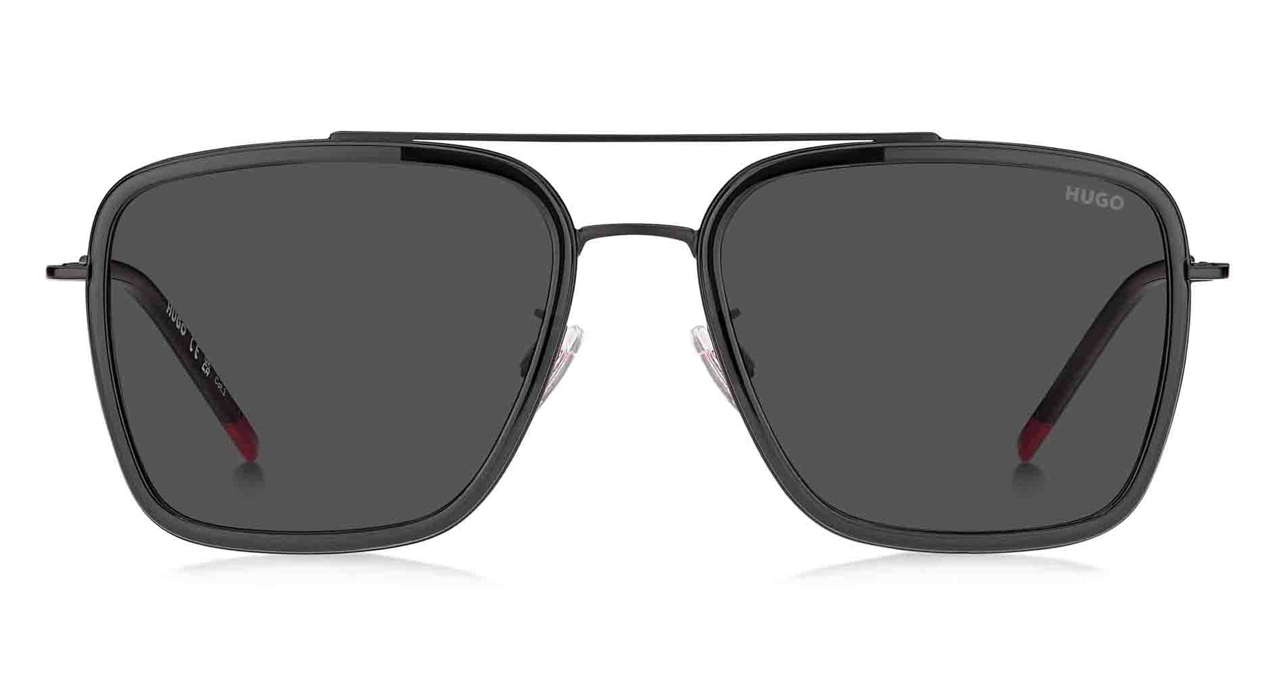 HUGO has reimagined its best-selling sunglasses according to the season's trends. The silhouette is contemporary, with surprising pops of colour on the temples and end tips. Lightness defines these glasses thanks to the high density acetate front and tubular metal temples. Integrated flexible hinges guarantee comfort, as does their ability to hold prescription sun lenses, for a look that’s always impeccable, fresh and easy to wear.