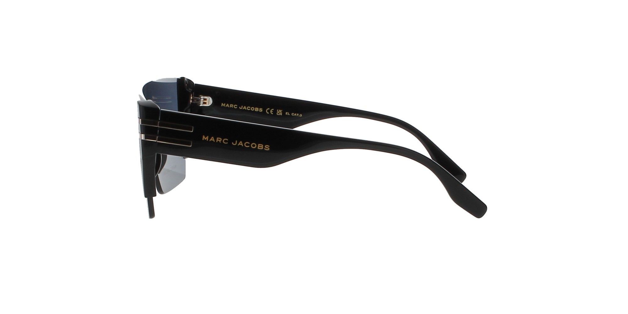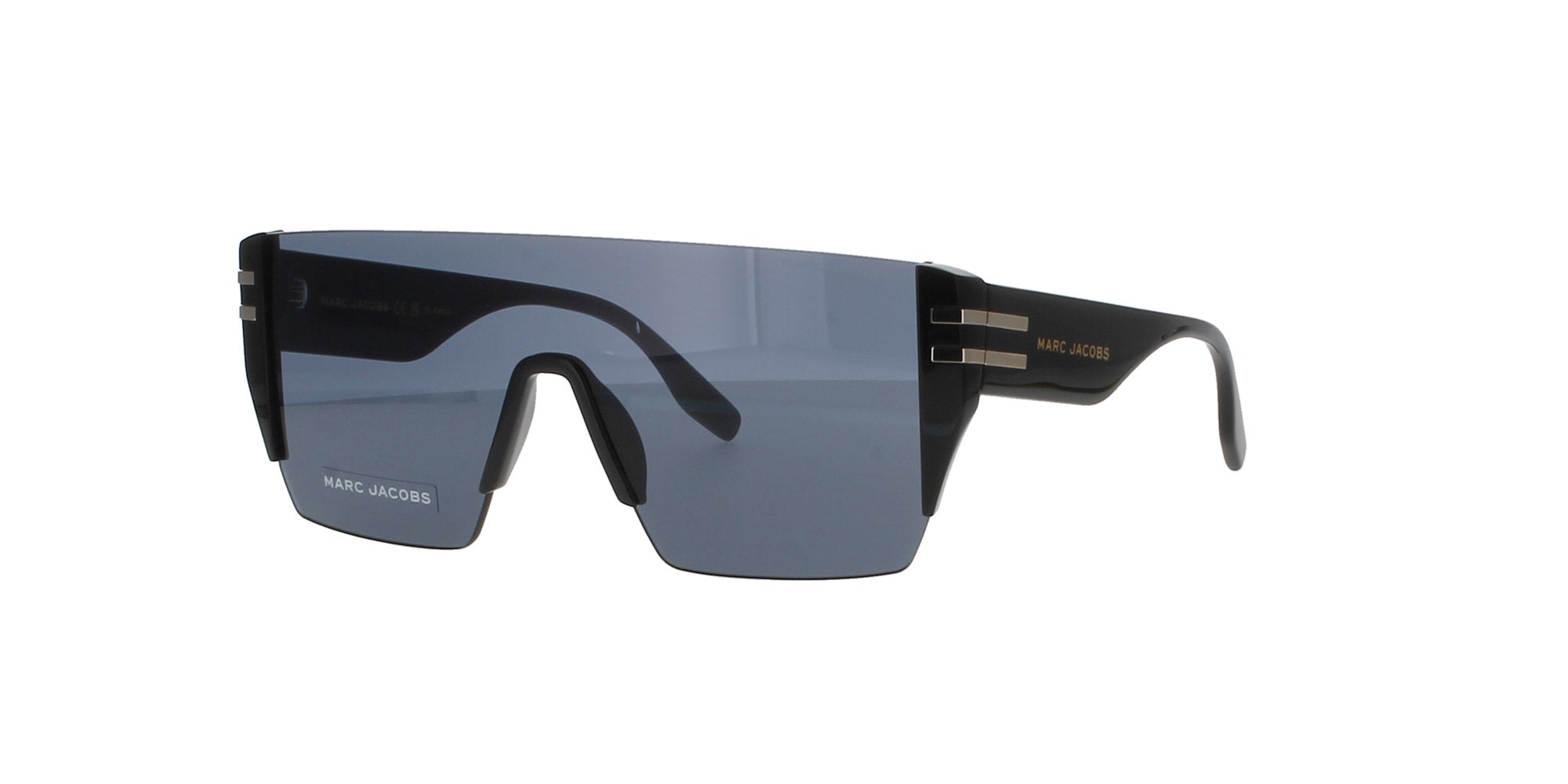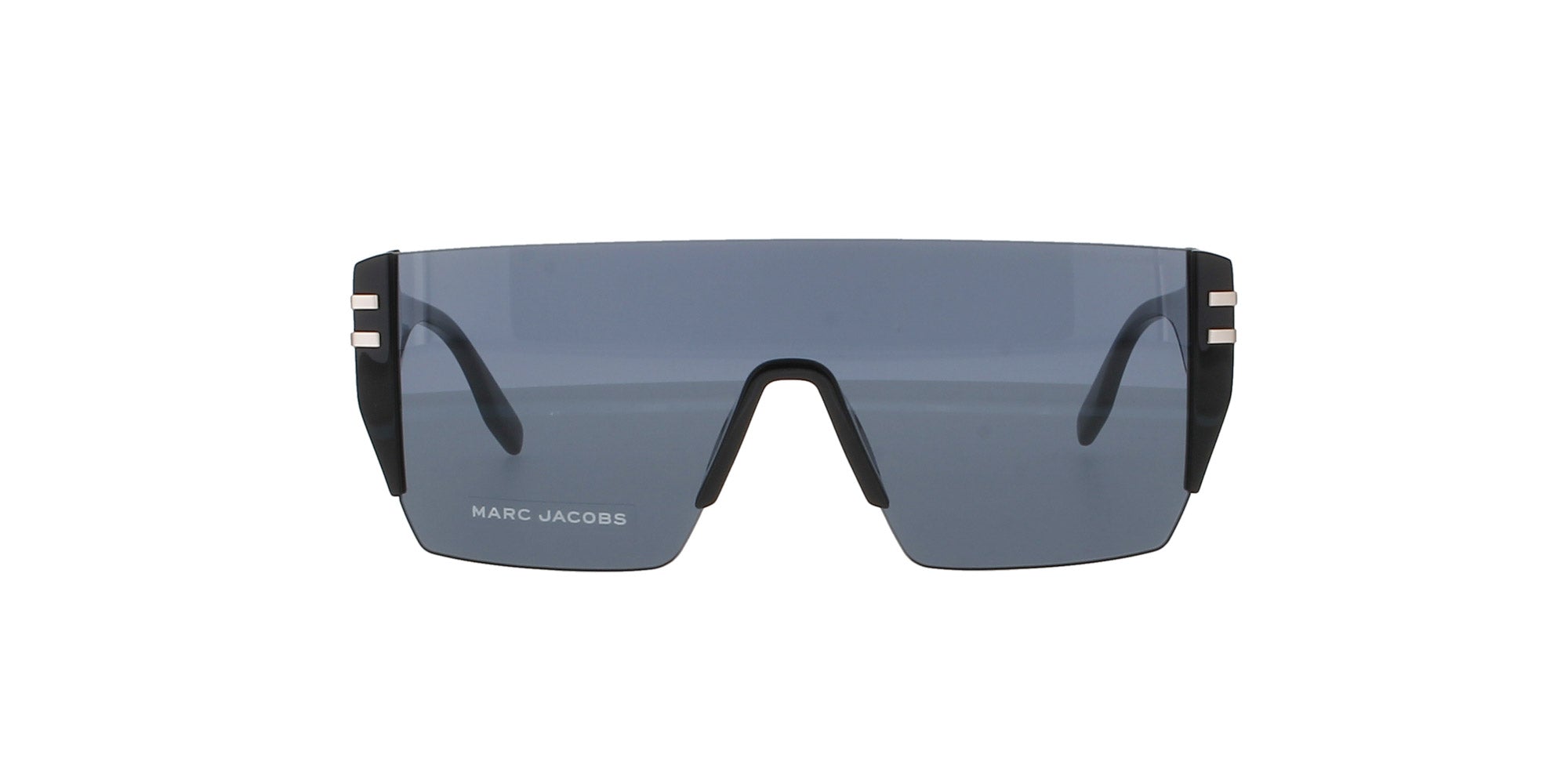 Featuring shield lensed, black sunglasses with logo imprinted temples