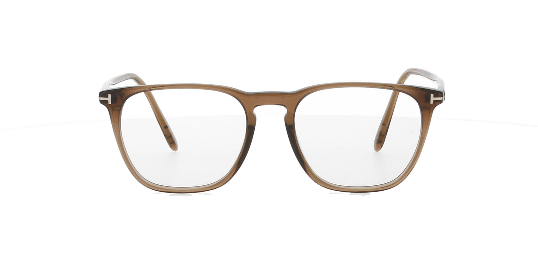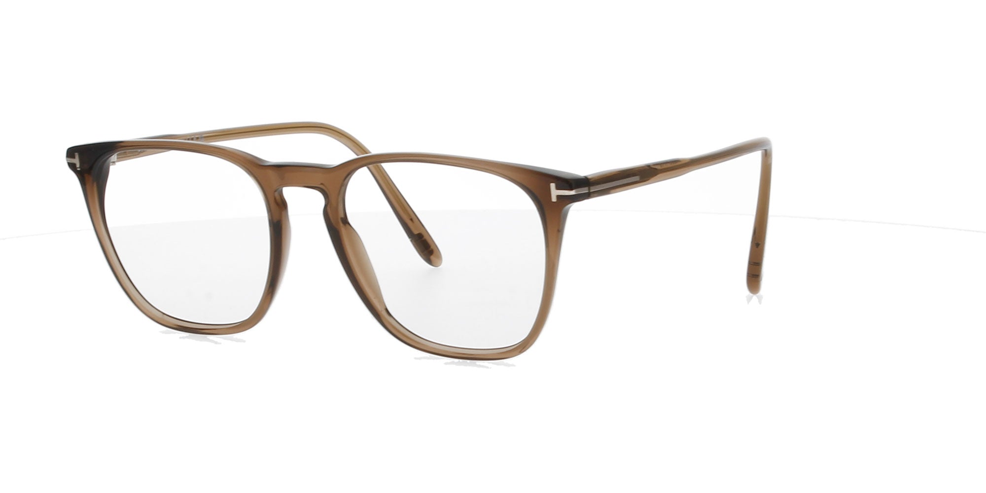 Featuring a brown transparent frame with the signature 'T' logo to both temples