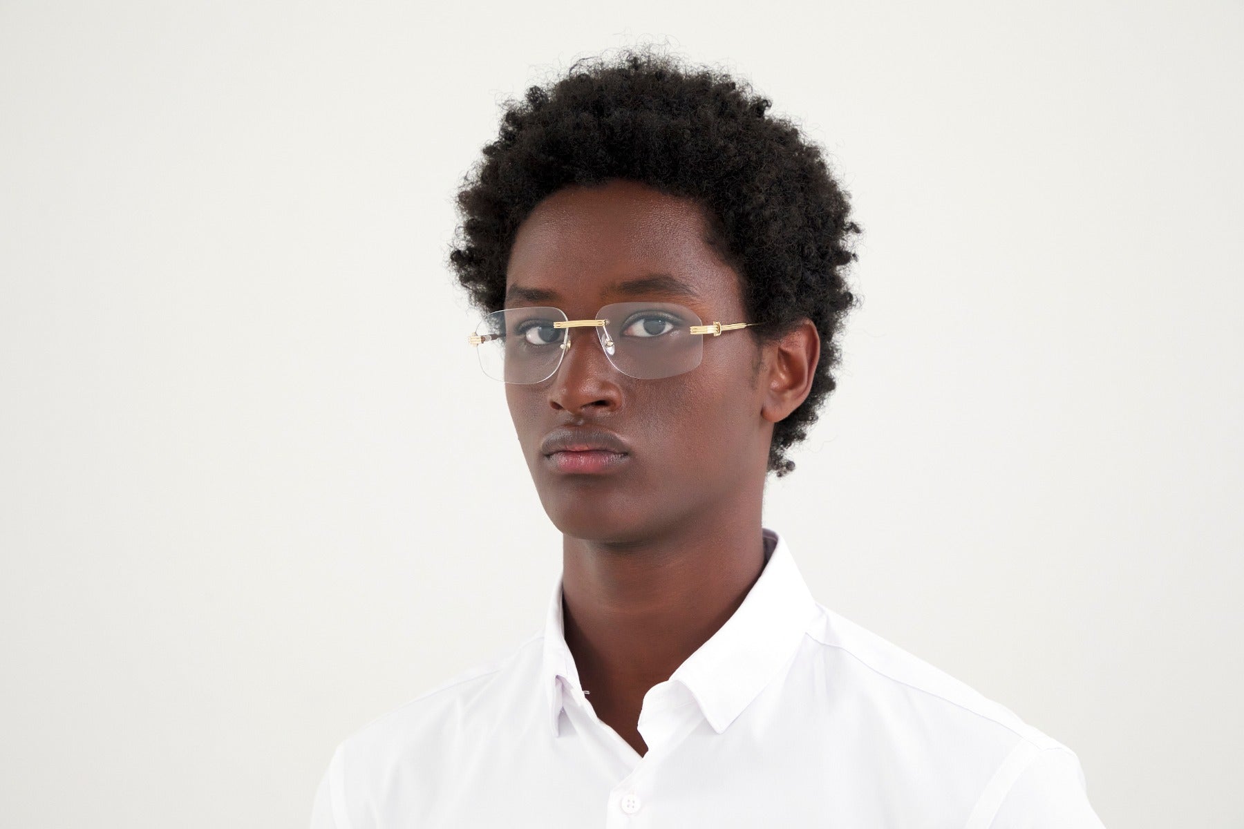 Classic rimless rectangular shape.