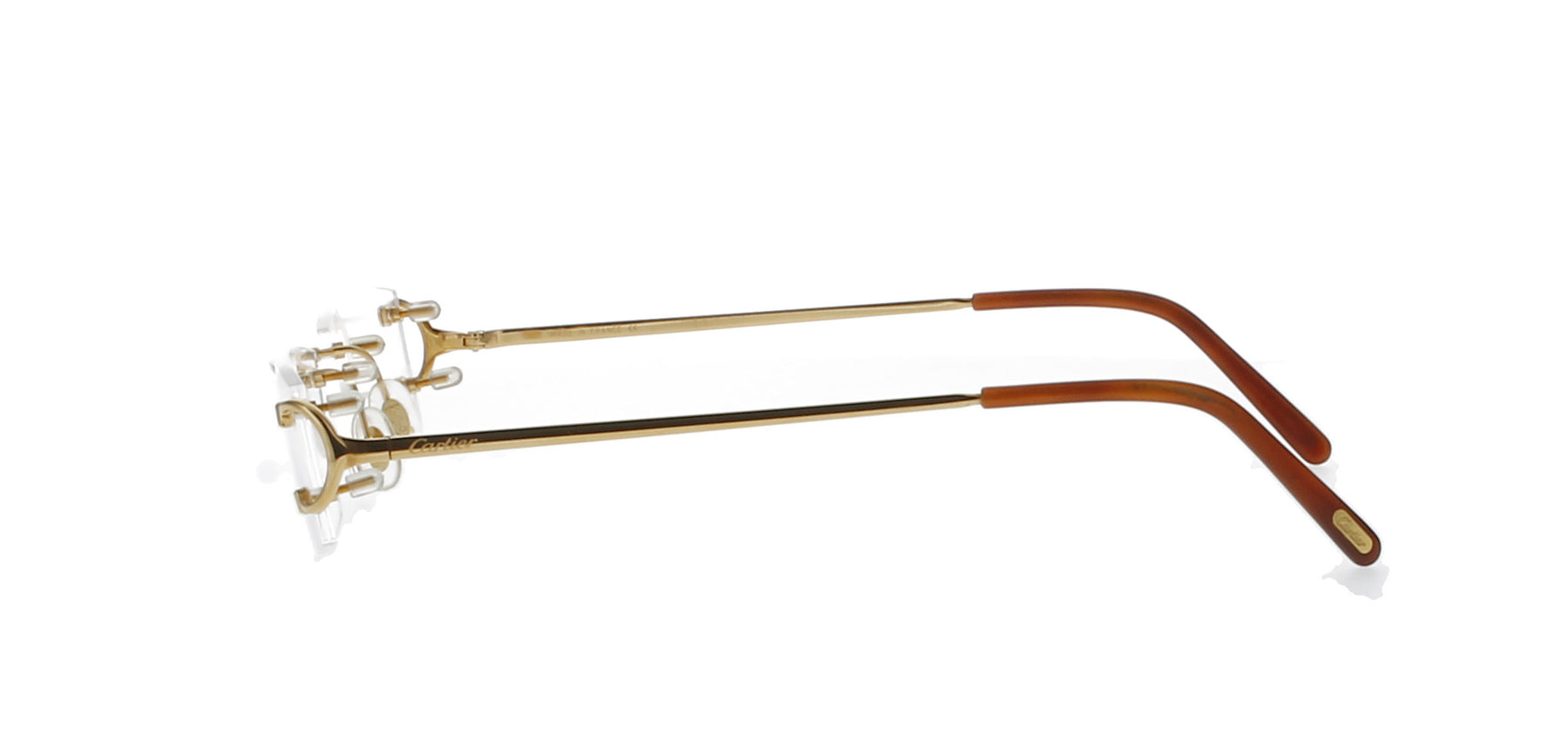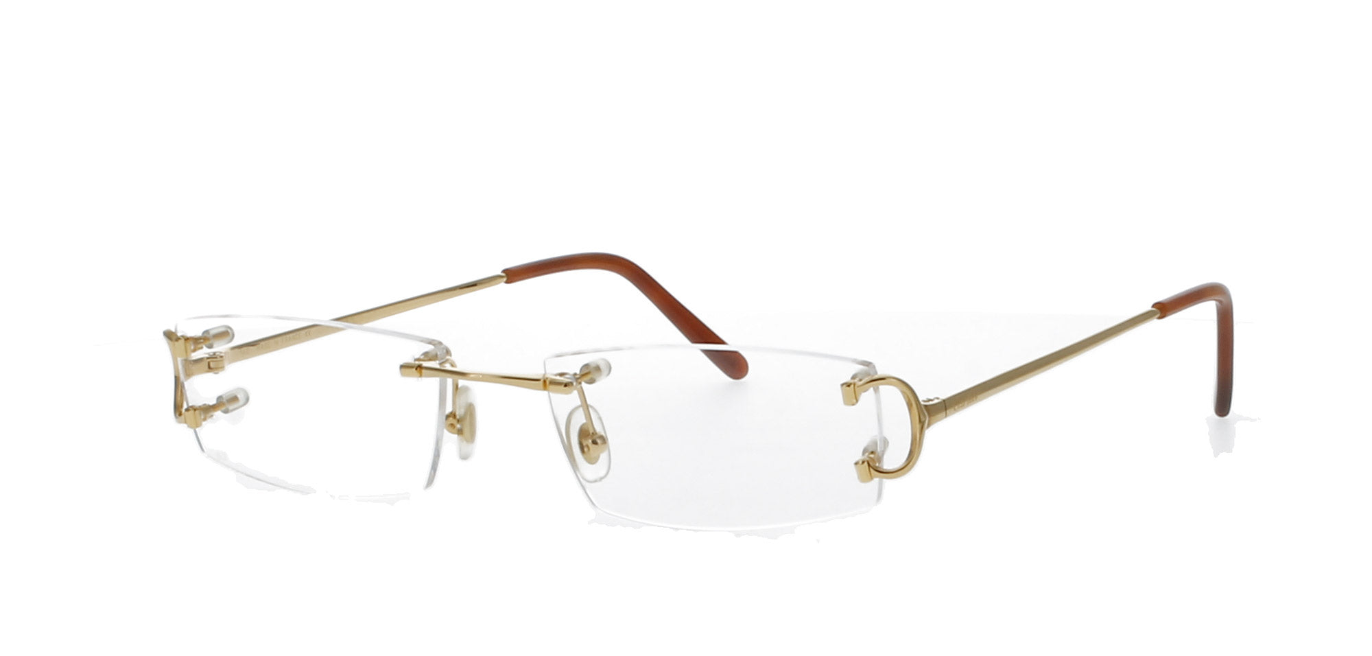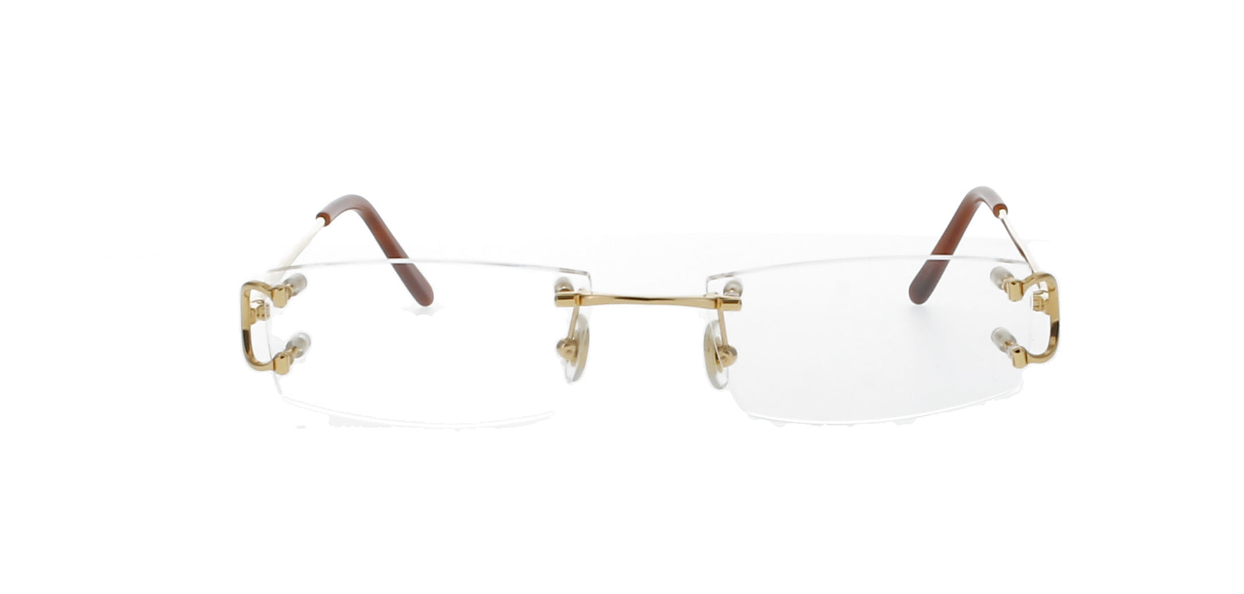 Featuring a luxurious, rimless frame with a gold nosebridge and temples. Also features the iconic 'C' at both hinges