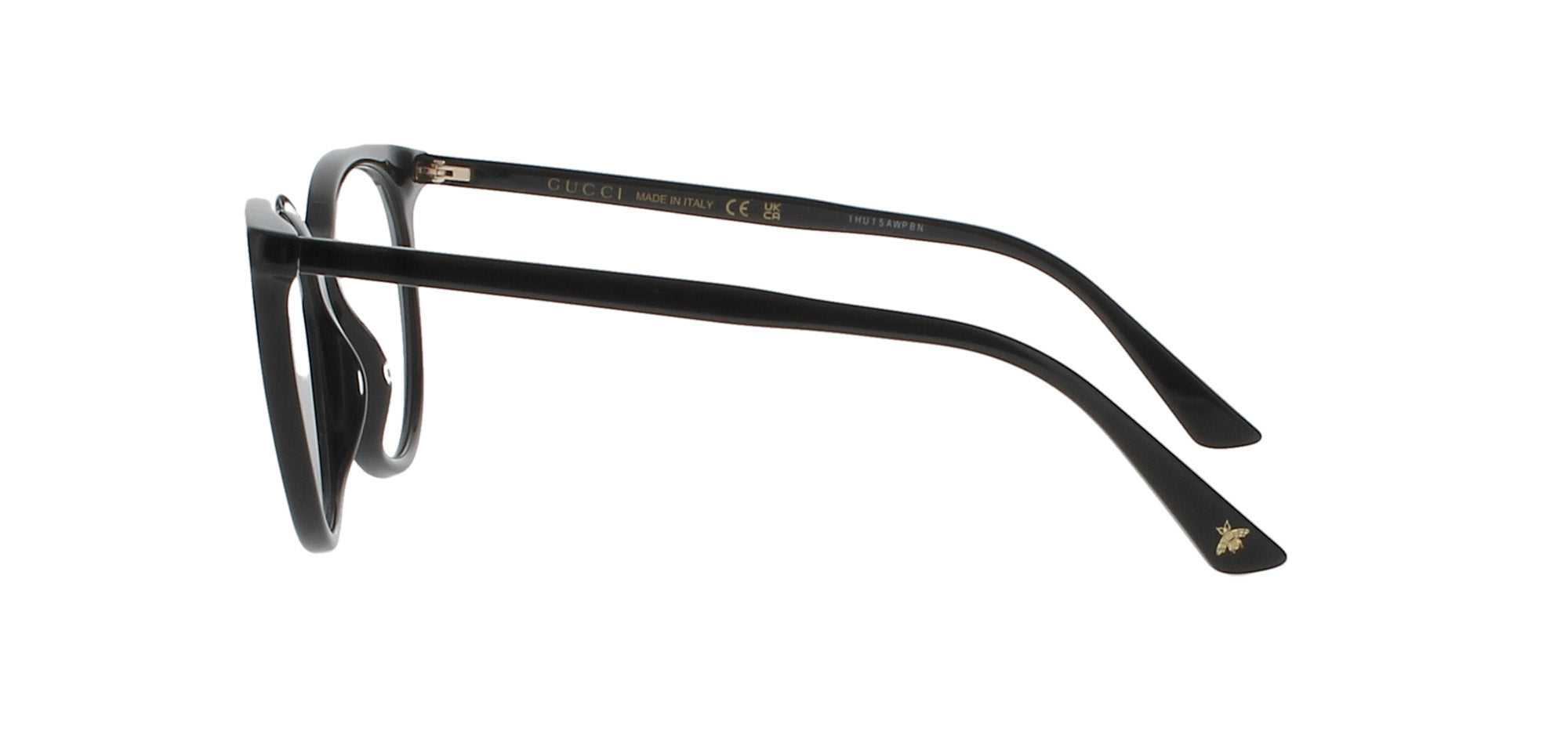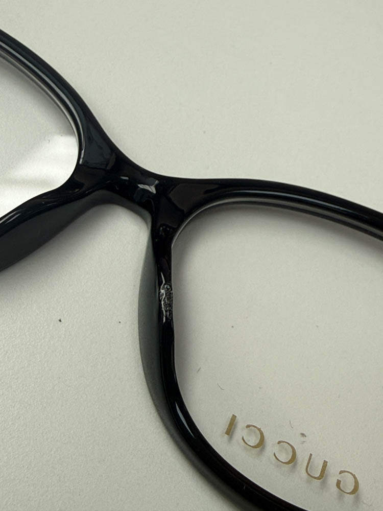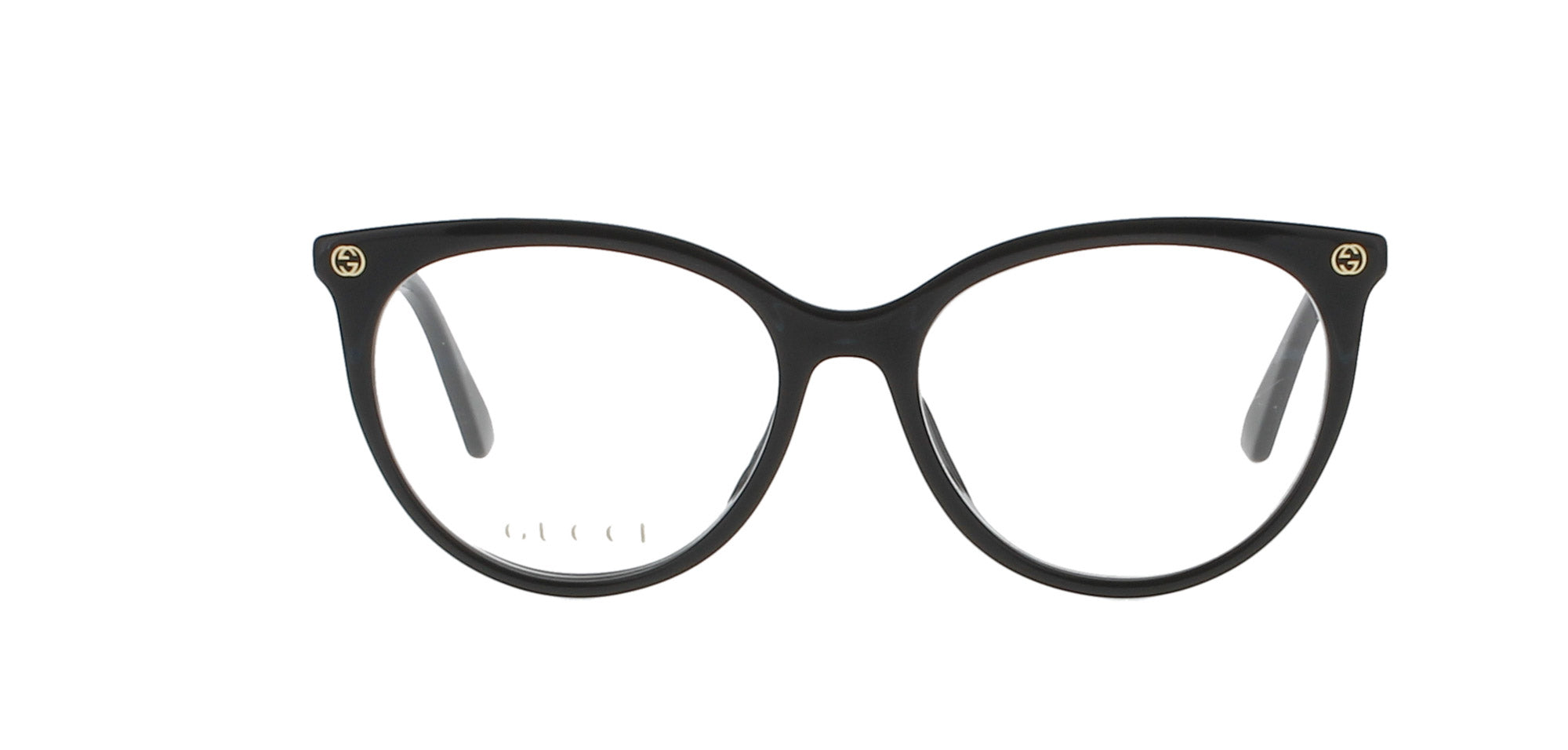 Features a shiny black frame with gold imprinted 'GG' logos to the front corners
