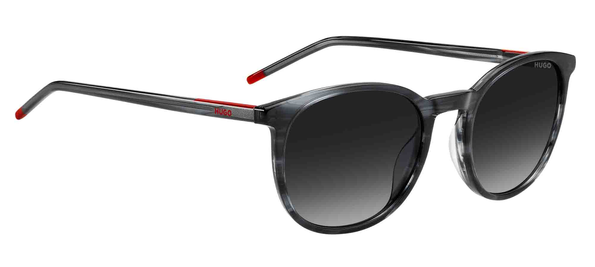 HUGO has reimagined its best-selling sunglasses according to the season's trends. The silhouette is contemporary, with surprising pops of colour on the temples and end tips. Lightness defines these glasses thanks to the high density acetate front and tubular metal temples. Integrated flexible hinges guarantee comfort, as does their ability to hold prescription sun lenses, for a look that’s always impeccable, fresh and easy to wear.