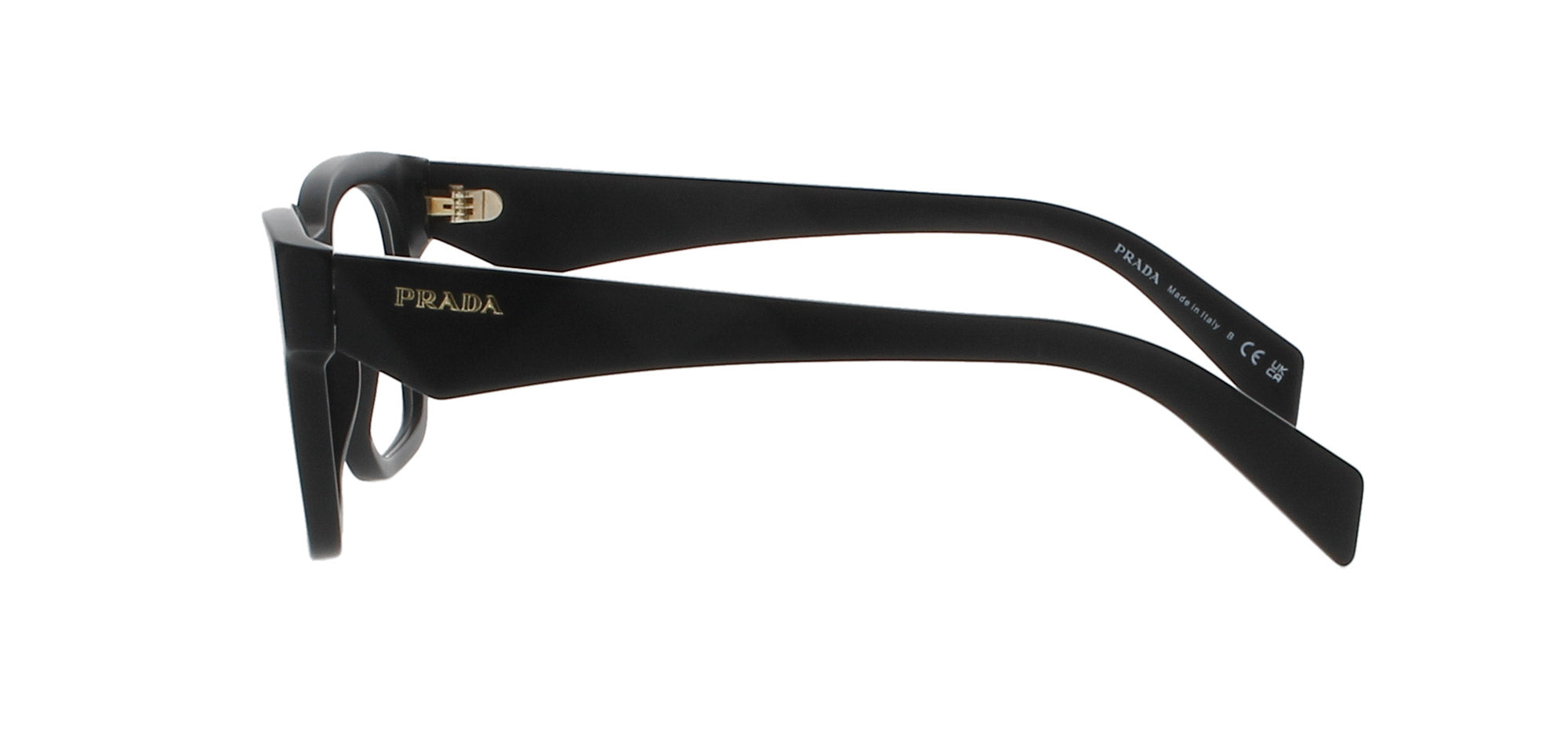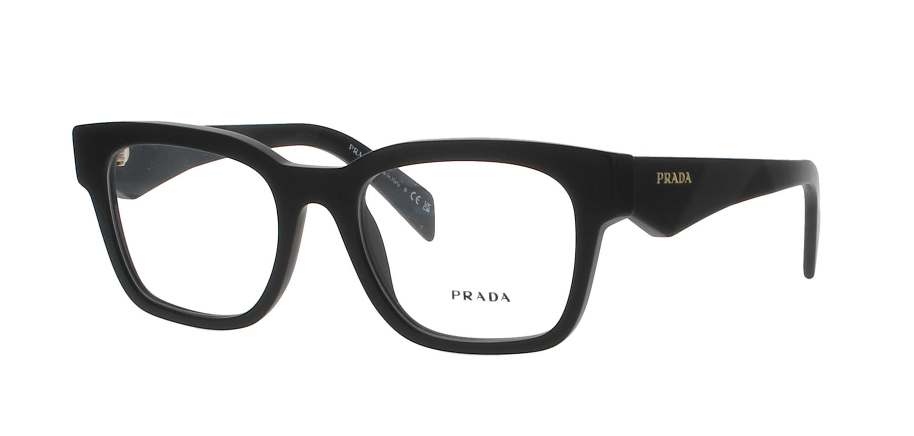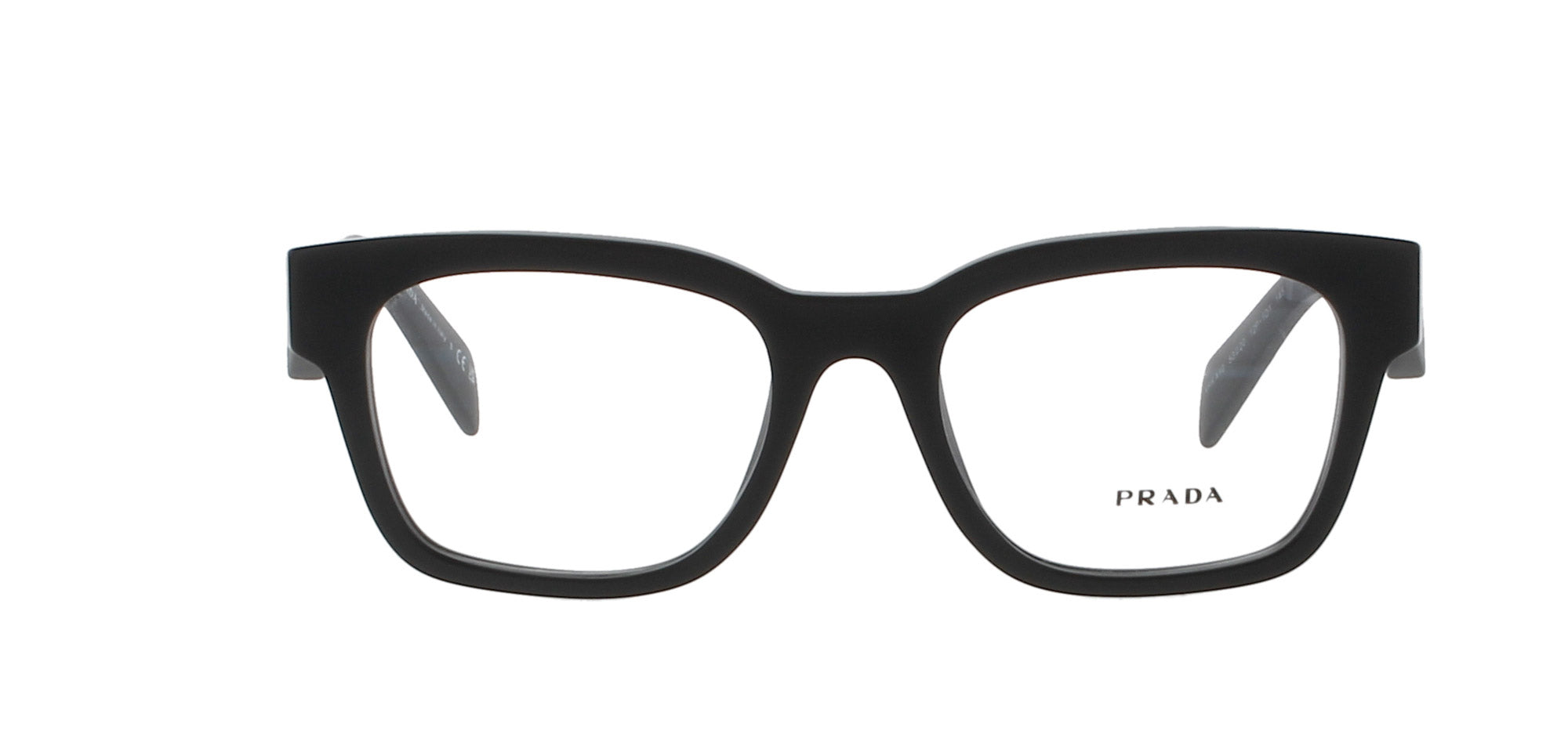 Features a square, matte black frame with the signature 'PRADA' logo on each temple