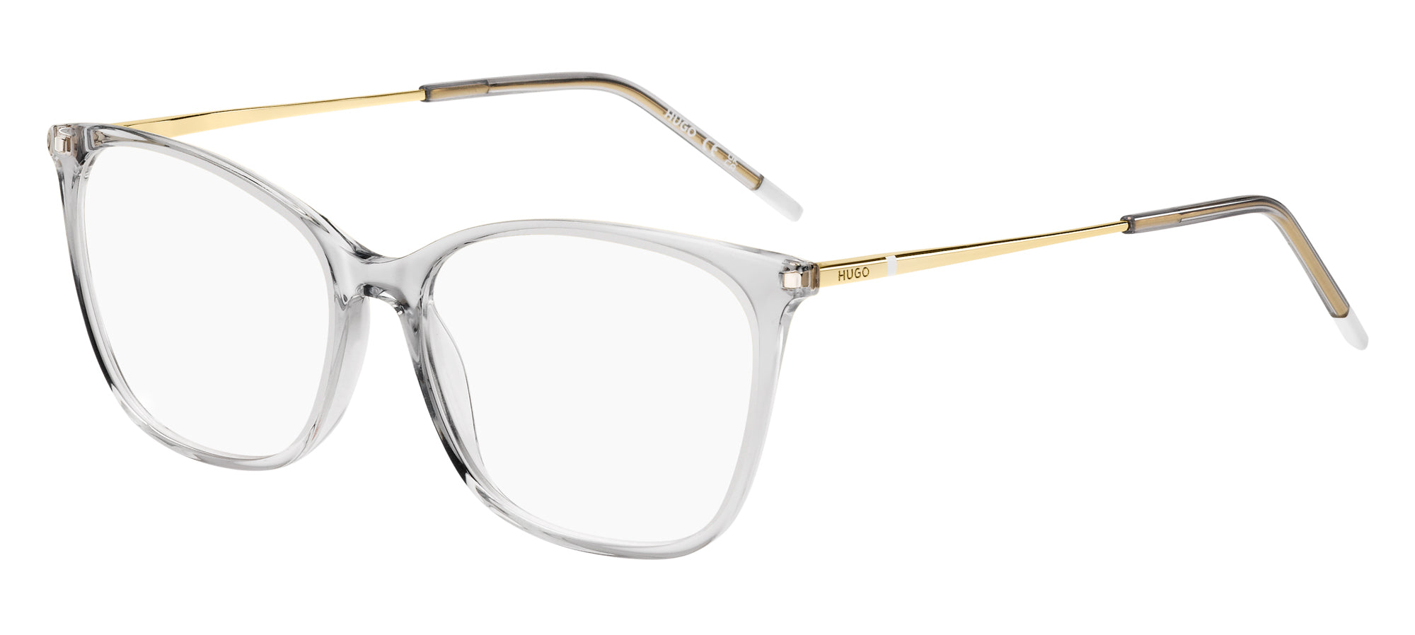 The free, casual elegance of these women's eyeglasses by HUGO underpins their authenticity. They're distinguished by the shape of the frames, bold yet light in their appearance and feel. The slender silhouette and rounded metal temples are to thank, made even more comfortable by the flexible hinges. The colourful detail next to the logo on the temples is coordinated with the end tips.