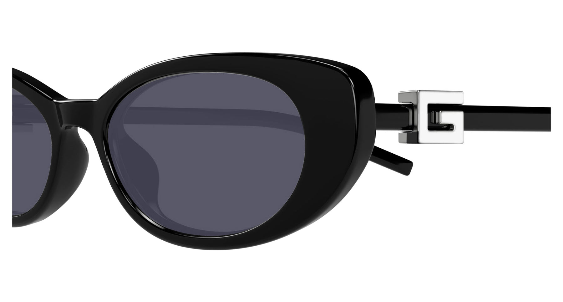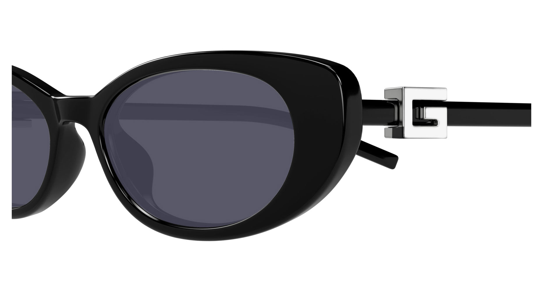 Narrow plastic shapes with a 90’s look and feel embellished through a unique G squared logo on the temple. Oval cat-eye shape inspired by the 90’s. Injected construction with temples embellished by a metal G Squared logo. Solid feminine color palette enriched by unique strassed logo skus.