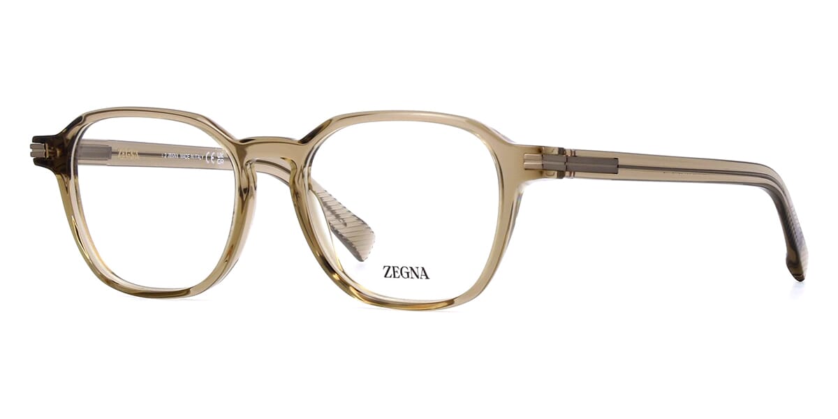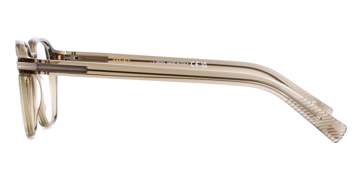Geometric acetate style with thin and lightweight structure featuring Zegna Eyewear's rebranding elements. Zegna logo is present on the inner side of the temple. Zegna logo on the inner temple and grip paddle on the end for a better held.