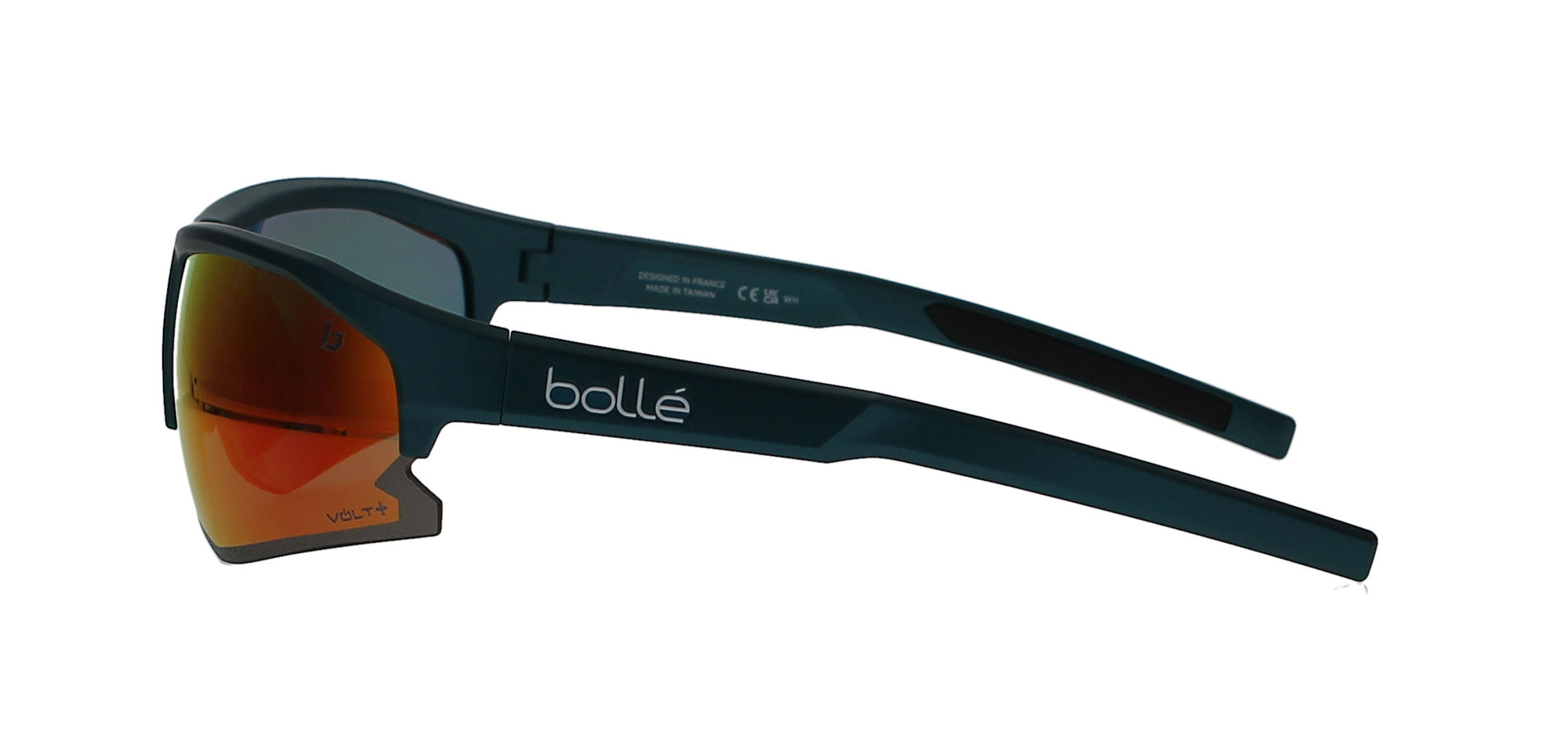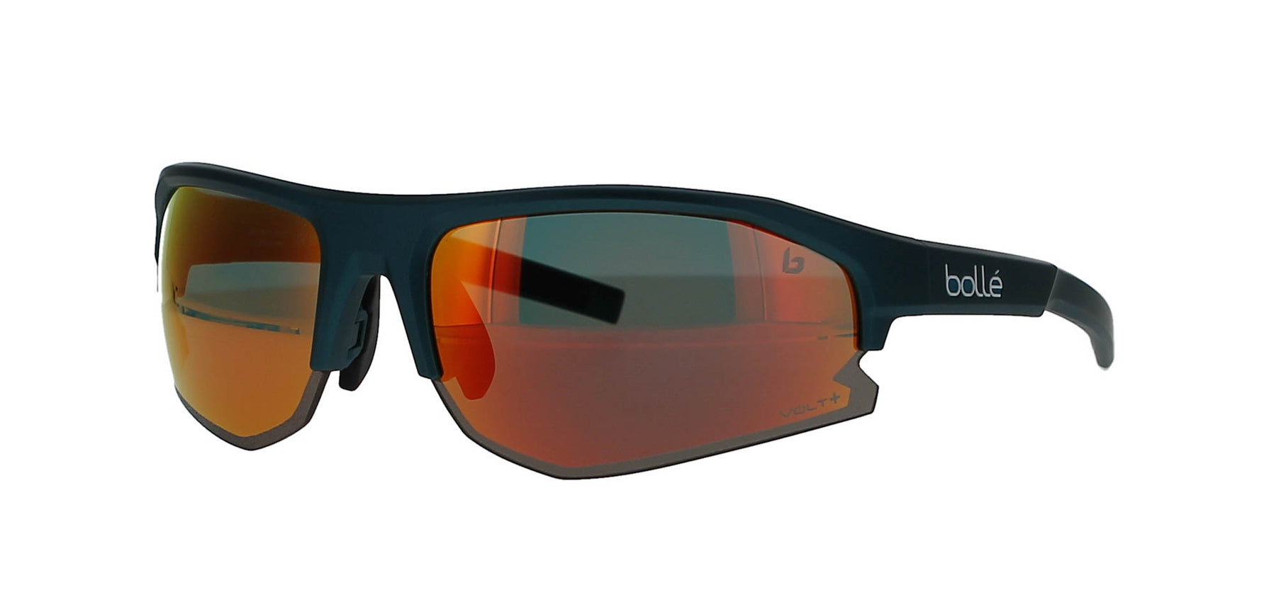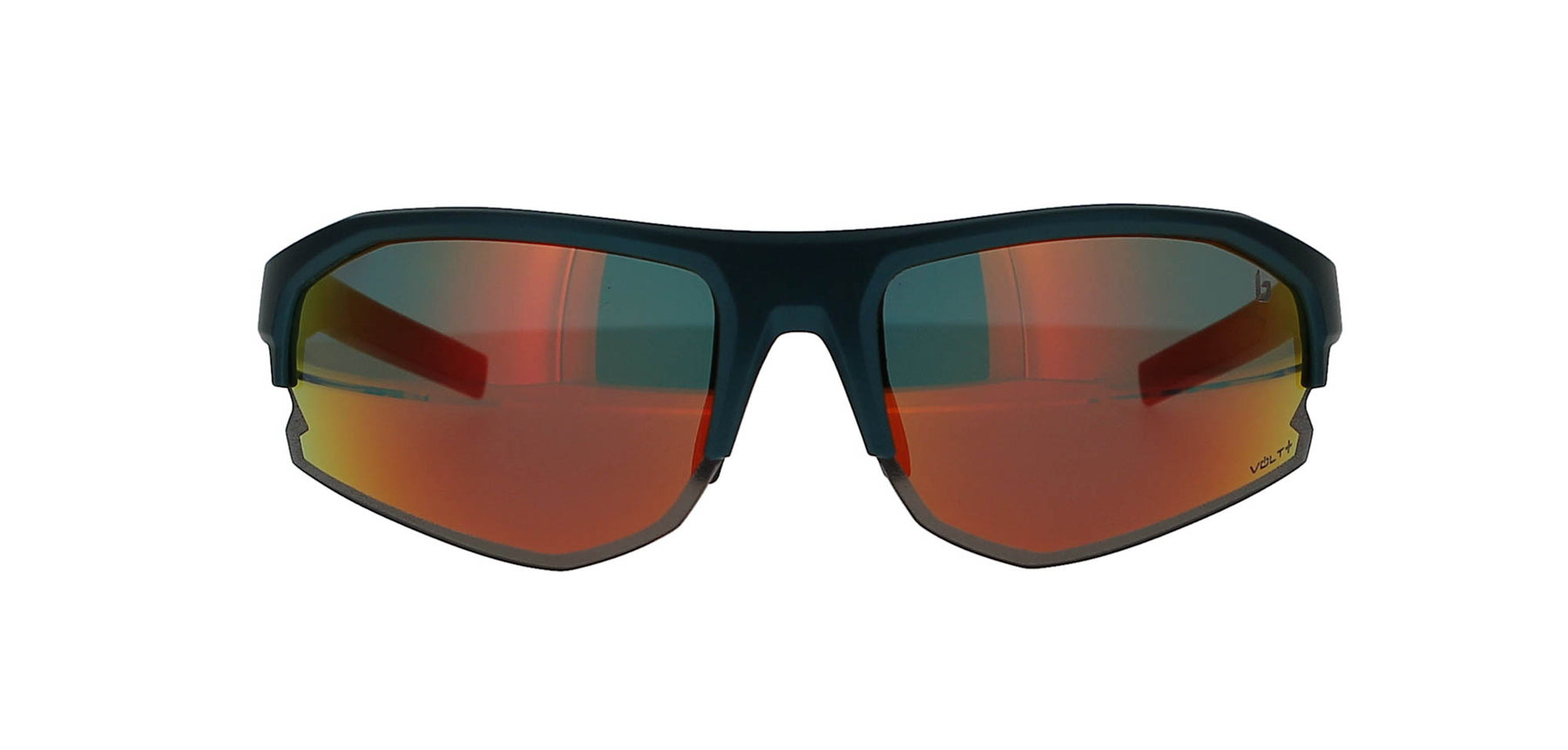 Features a sporty, rectangular, teal blue metal frame with polarised lenses