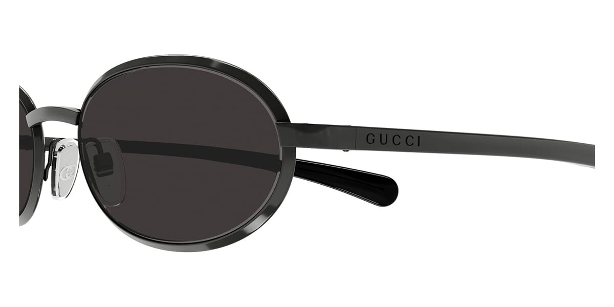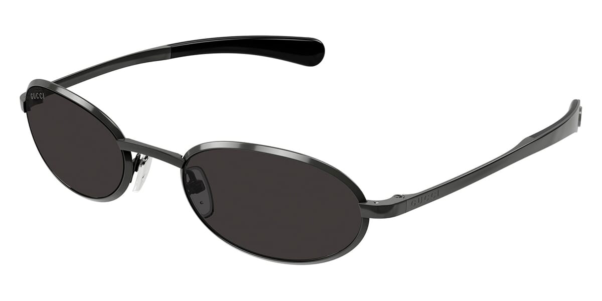 Vintage look and feel bending metal style. Narrow oval shape with straight temples both adorned with Lettering logo on the hinges and Interlocking G on the endpieces with an add-on of internal rubber material. Color palette characterized by both silver and gold galvanic.