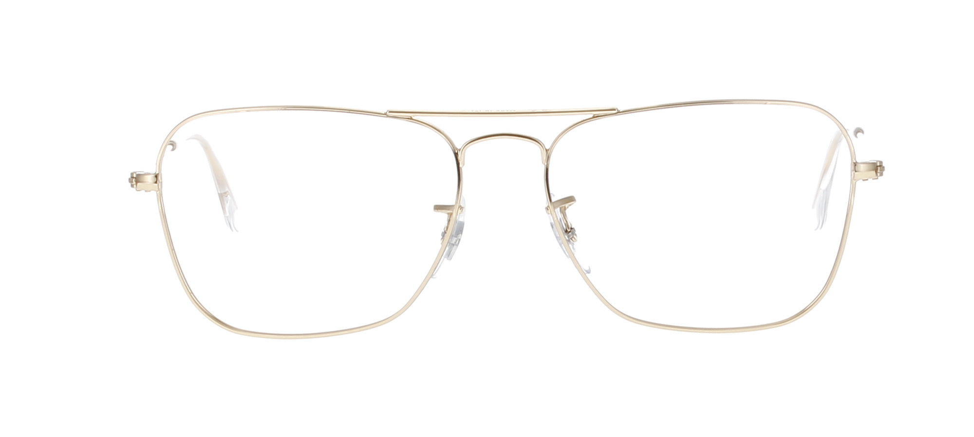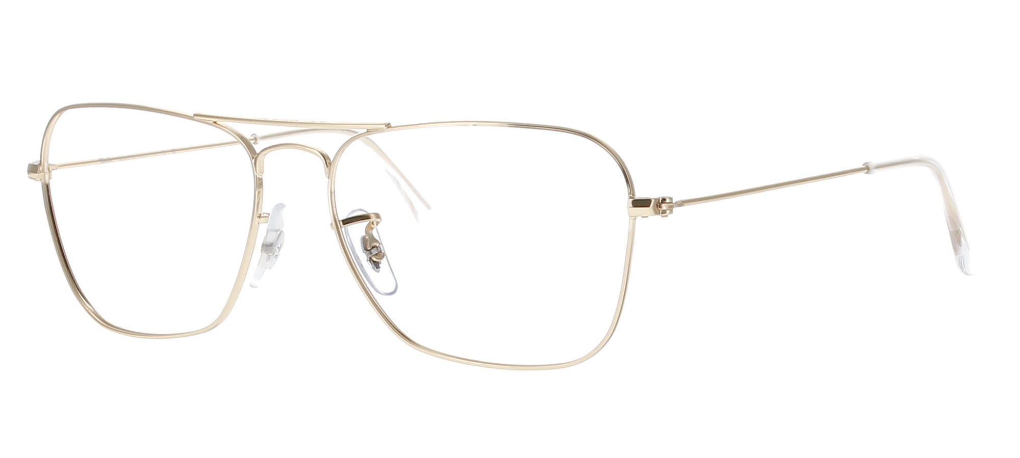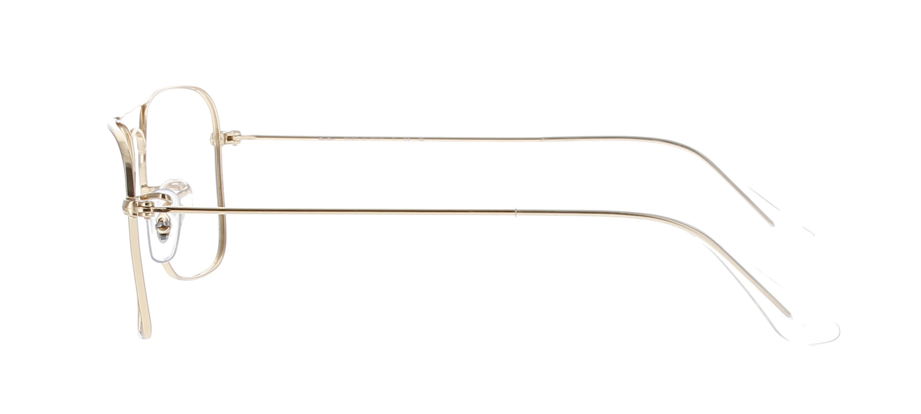 A square polished gold frame with a double bridge. Originally a sunglass, would look great with clear or tinted prescription lenses