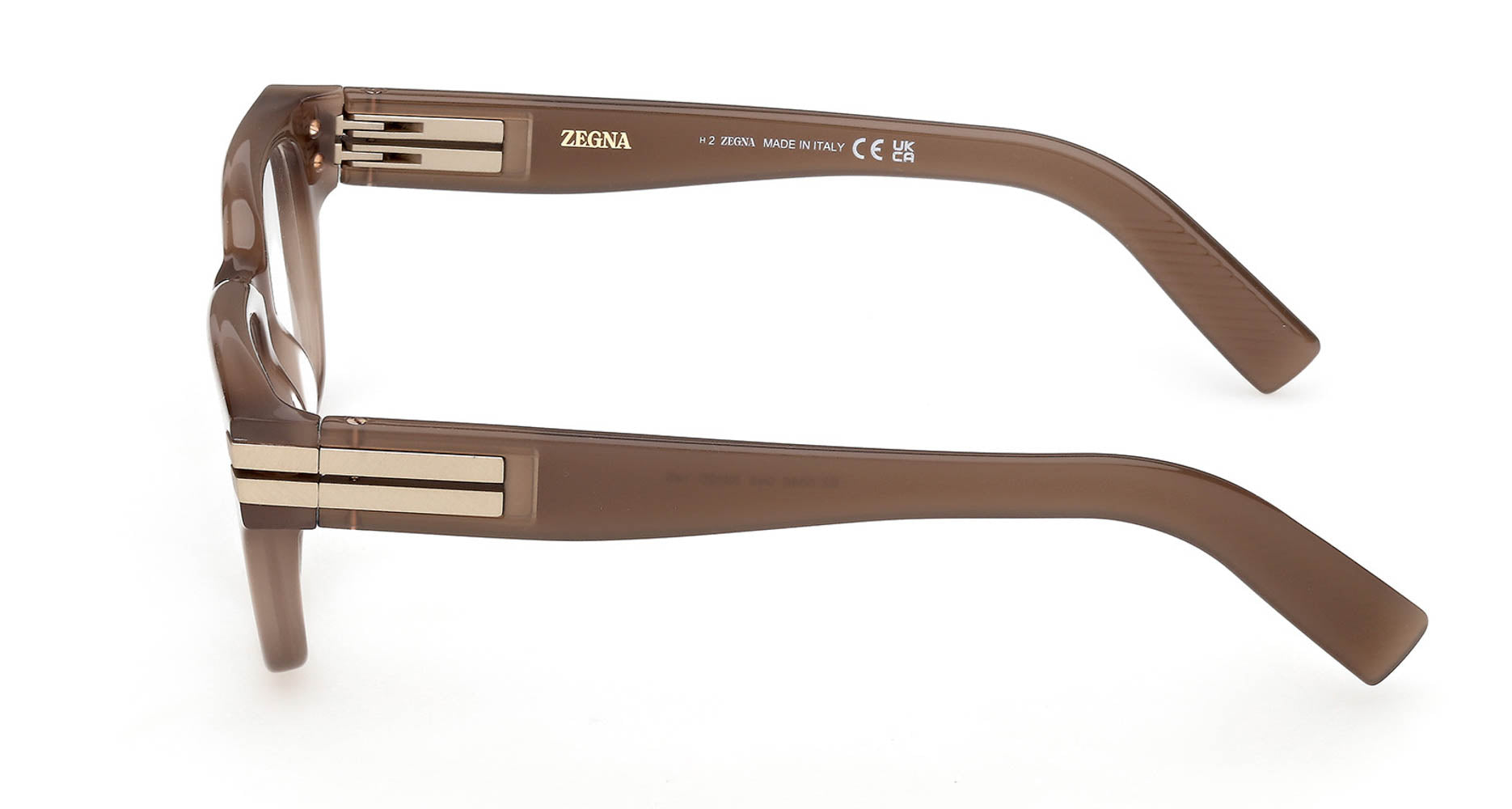 ZEGNA’s iconic 232 Road Brand Mark is inspired by the 232 Road, first paved by the brand’s Founder to connect Oasi Zegna natural territory to local communities. Interpreted with a multitude of finishes throughout the Eyewear category, the 232 Road Brand Mark most notably hallmarks end pieces for an air of modernity.