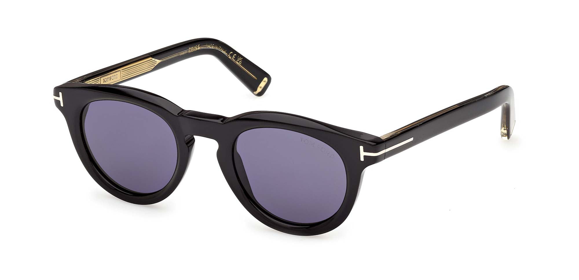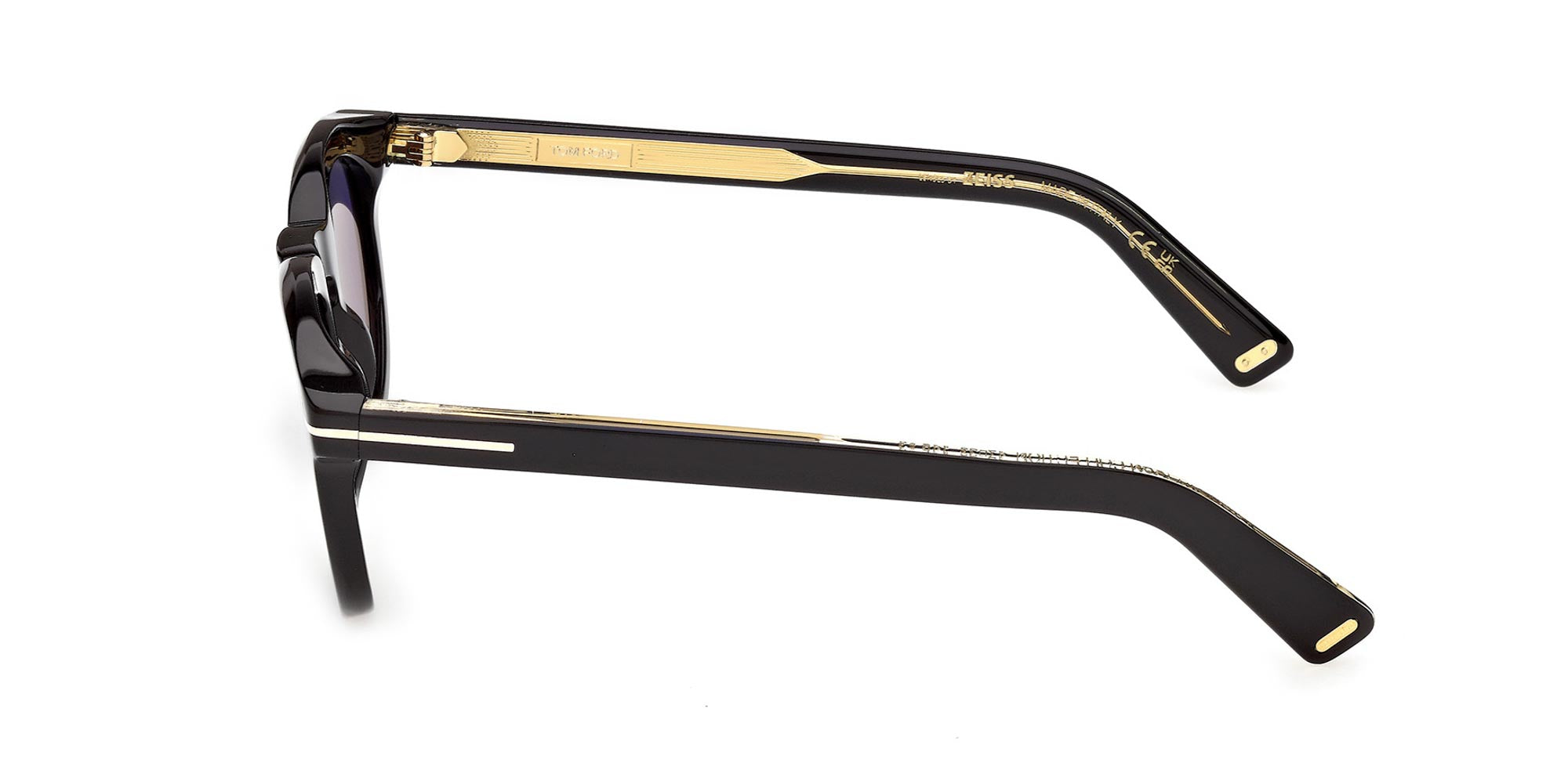 Pantos shaped style part of the Icon collection. Bold acetate with sleek lines and bevel cuts. Keyhole bridge, temple wire core with Tom Ford signature visible on the inner part. Gold colour details, Zeiss lenses.
